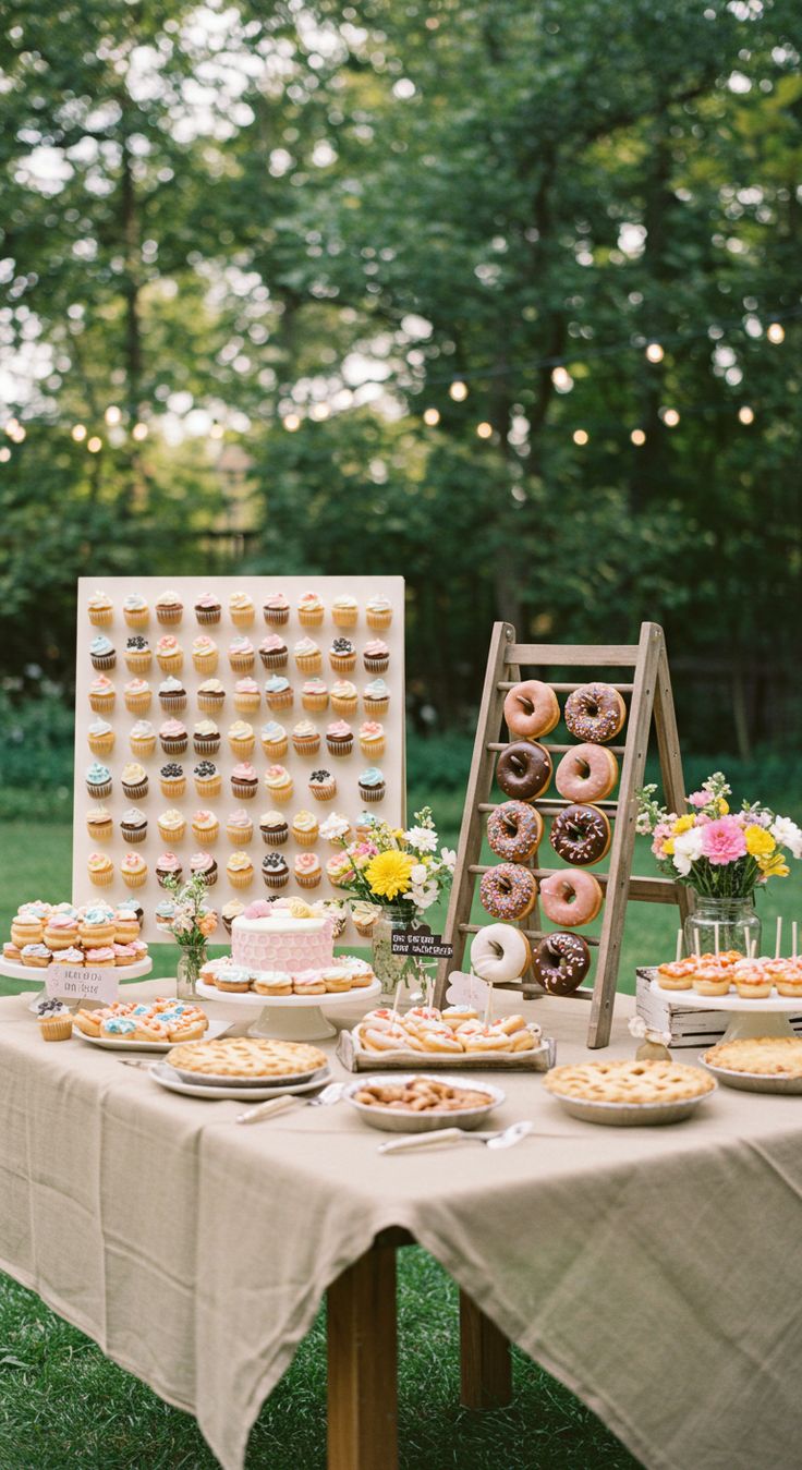 A small dessert corner is an affordable way to satisfy everyone’s sweet tooth. Instead of an expensive cake, couples can arrange cupcakes, cookies, pies, or brownies. Guests enjoy having different choices, and the setup looks charming with simple trays or stands. DIY details like handwritten labels or colorful napkins make it feel special without high costs.